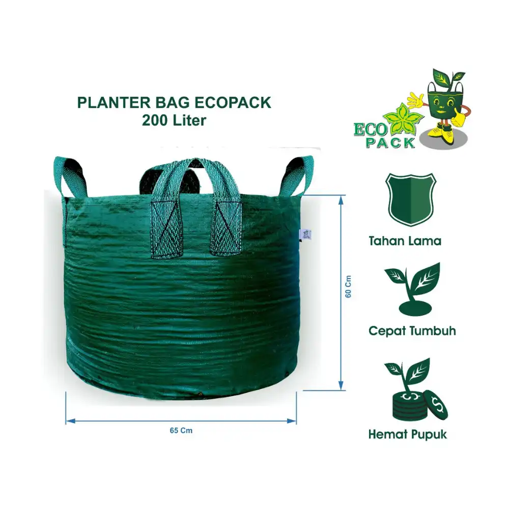 Planter Bag Eco Pack (200 Liter (65×60 cm) berat 550 gr/pc tebal 200 GSM dan 4 Handle)